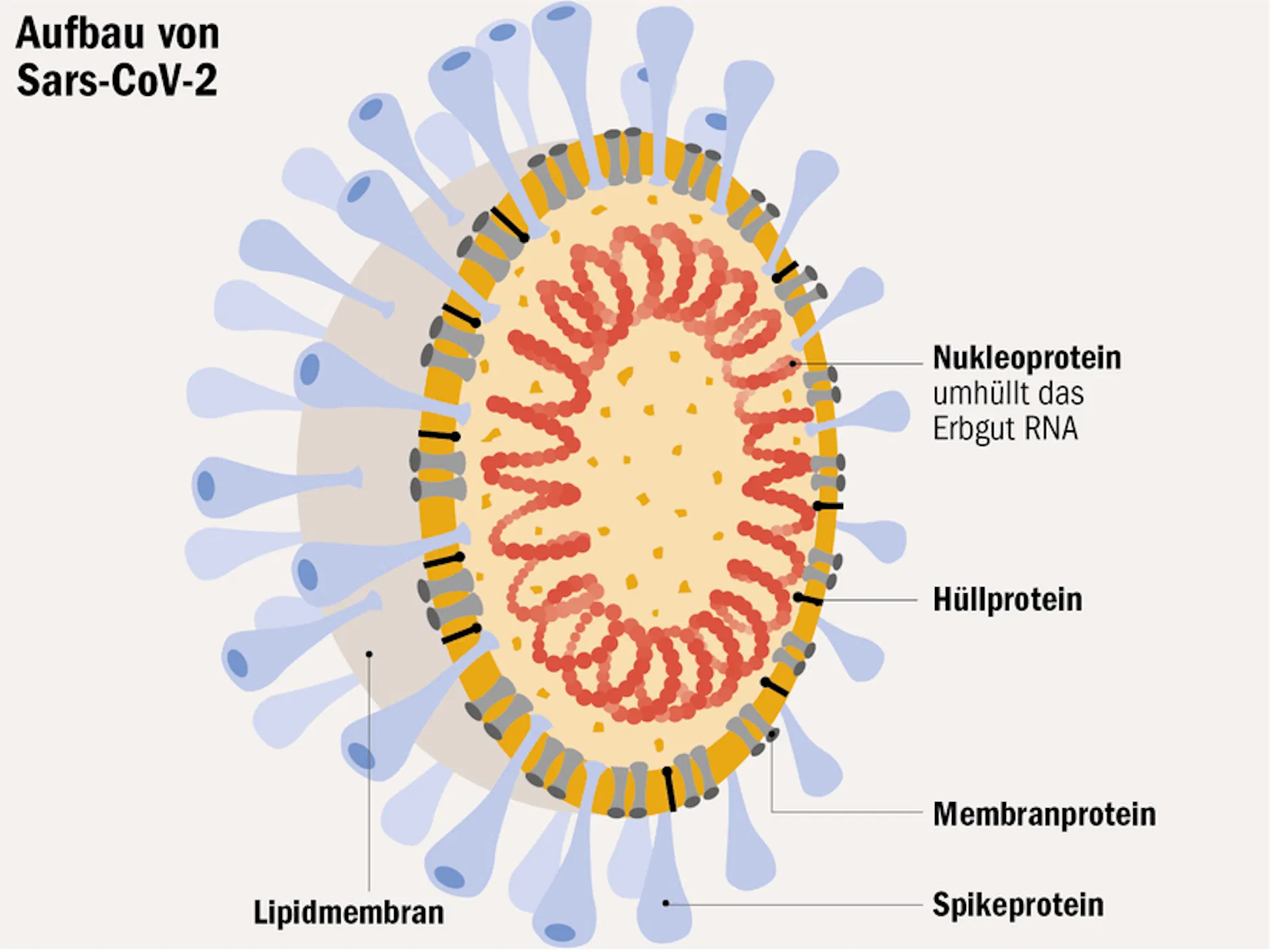 Aus diesem Grund rechnen die Forscher damit, dass ihr Impfstoff eine vergleichsweise lang andauernde Schutzwirkung haben könnte. Noch dazu setzen sie auf eine breitere Wirksamkeit. Denn bei der von ihnen verwendeten RNA handelt es sich um die genetische Bauanleitung für das sogenannte Nukleocapsid, auch Nukleoprotein oder kurz N-Protein genannt. Dieses Eiweiß befindet sich im Inneren des Coronavirus und umhüllt das Erbgut RNA.