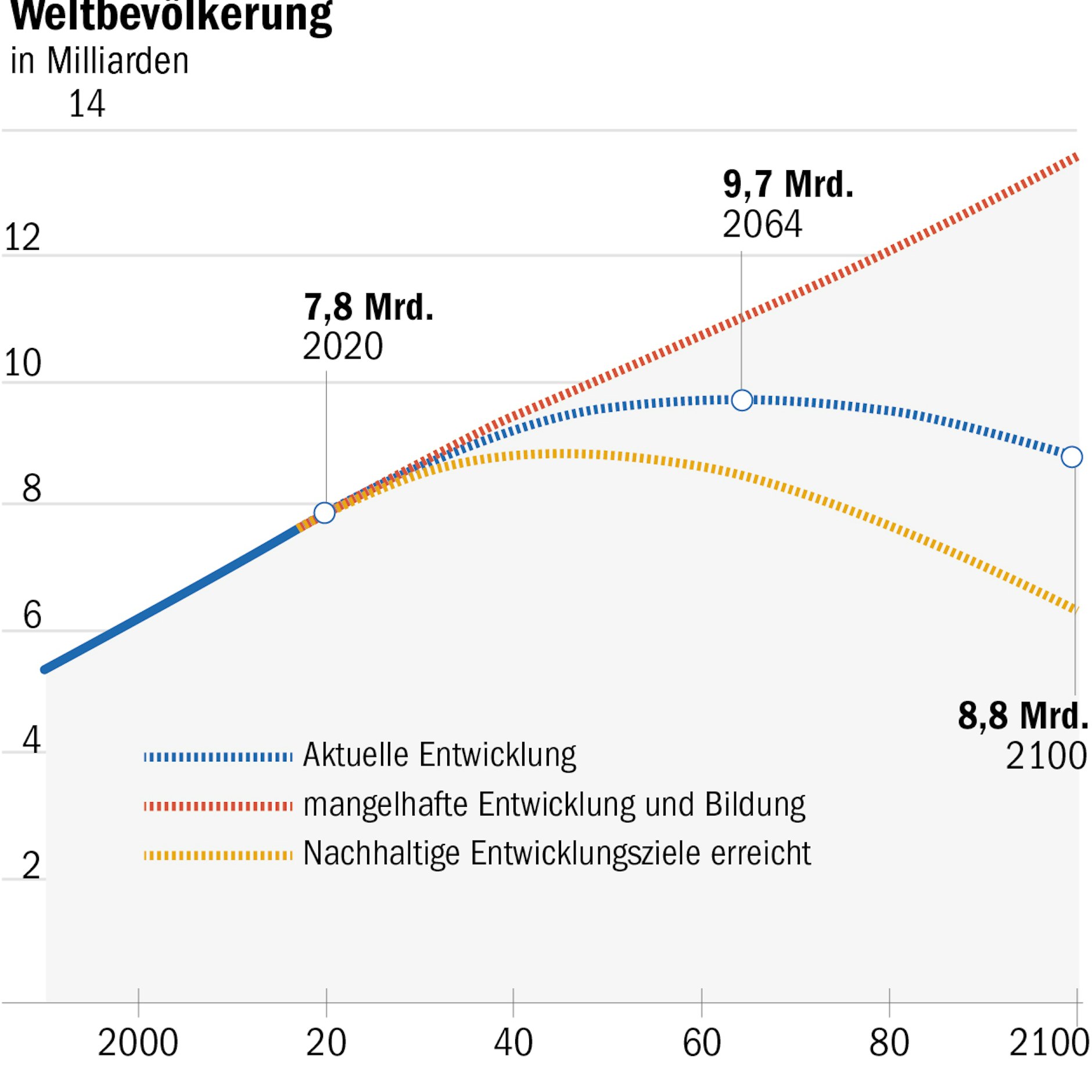 Im Mai 2020 lebten auf der Erde etwa 7,8 Milliarden Menschen. In ihrer Publikation „World Population Prospects 2019“ hatten die Vereinten Nationen prognostiziert, dass es im Jahre 2100 wahrscheinlich 10,9 Milliarden sein werden. Doch die Forscher aus Seattle haben eine andere Prognose. Ihrer Studie zufolge wird die Bevölkerung in 23 Ländern – vor allem in Europa und Asien – im Vergleich zu heute um mehr als die Hälfte schrumpfen.