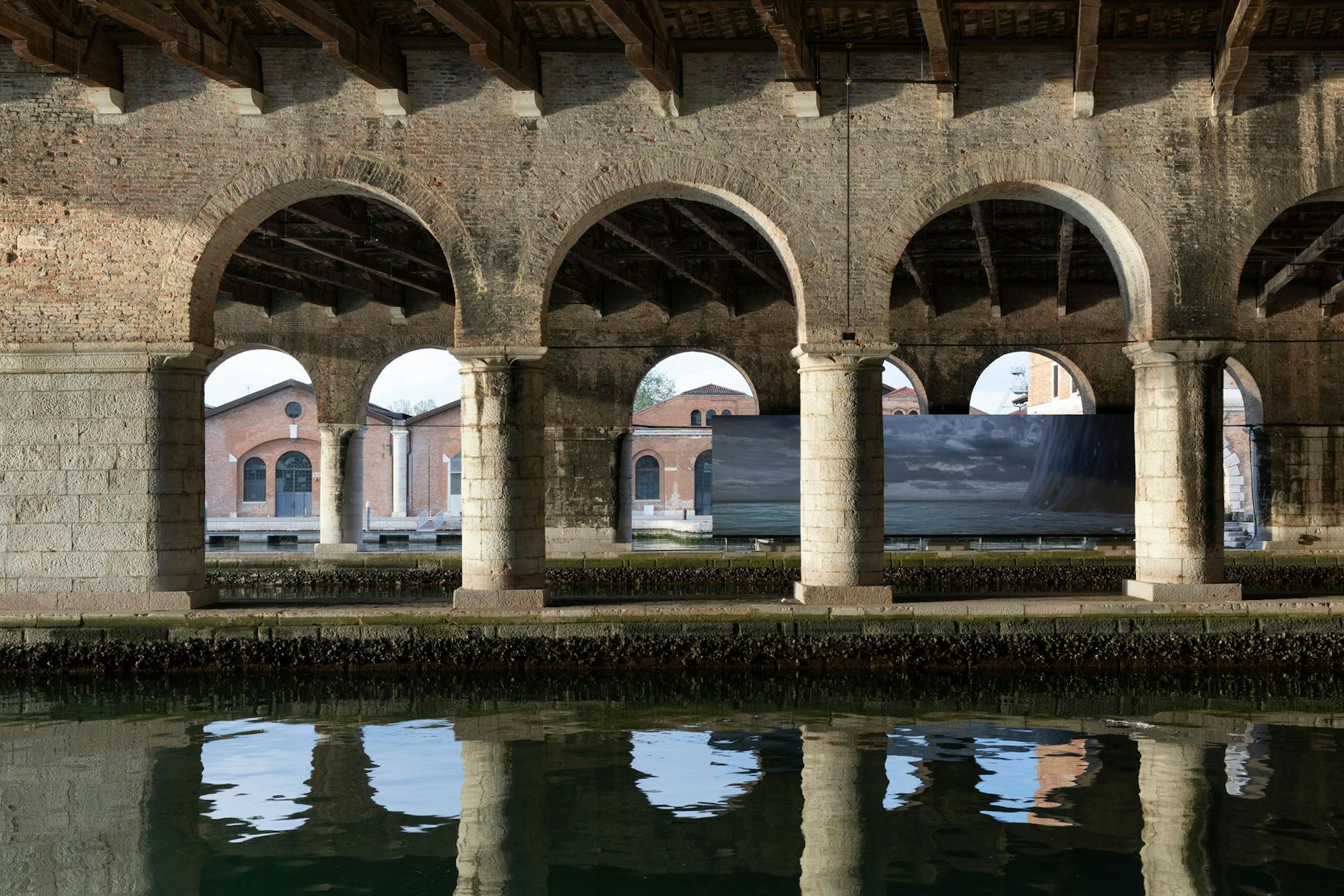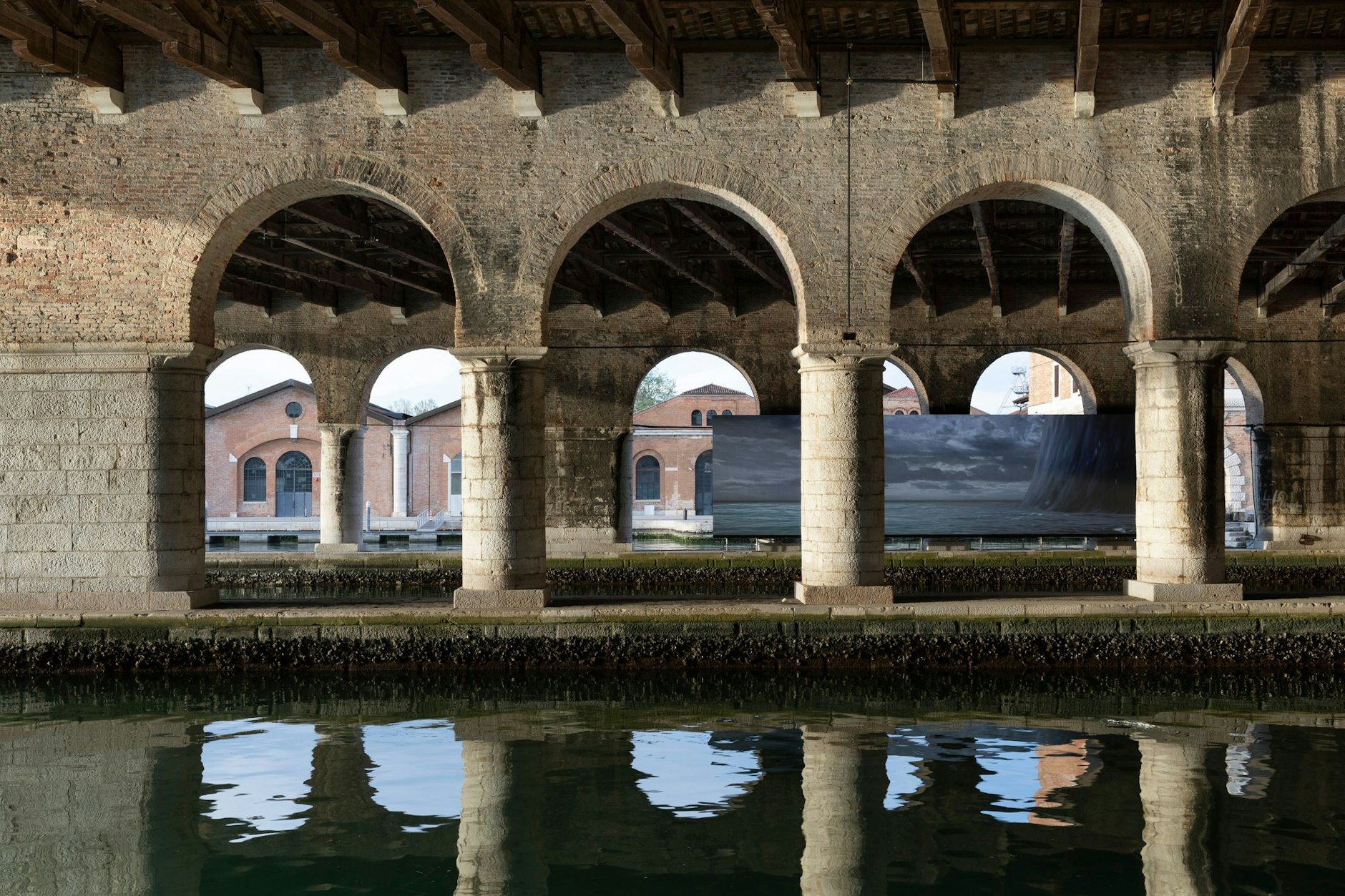 Und dann wuchert da dieser wundersam echte Garten „To see the Earth before the End of the World“ von Precious Okoyomon. Die Pflanzen wachsen, erobern sich den Raum neu, und wer weiß, wie sie im November aussehen. Es gibt hier wahrlich viel Kunst für die Sinne und wenig Digitales. Zuletzt auch noch in den Arkaden des Hafenbeckens Gaggiandre. Dort tönen Laute und Gesänge von Walen aus Wu Tsangs Erforschung von Melvilles Moby Dick.