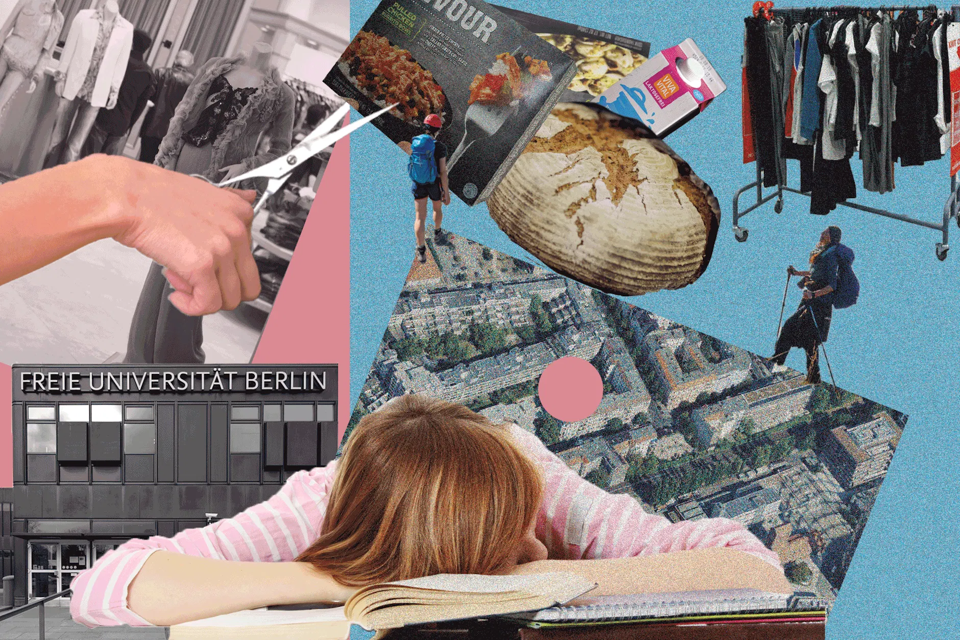 Mit den 900 Euro, die Sabrina M. bekommt, muss sie exakt haushalten. Sie teilt sich mit einer anderen Studentin eine 50 Quadratmeter große Zweizimmerwohnung in einem Altbau in Schöneberg und zahlt dafür mit Strom, Gas und Telefon 630 Euro im Monat. Außer den Kosten für ihre Wohnung stehen monatlich 50 Euro Semestergebühren an sowie 20 Euro für ihre Mensakarte. Für Lebensmittel und Hygieneartikel gibt sie etwa 55 Euro jeden Monat aus. 70 Euro muss sie sich für Lehrmaterial, Versicherungen und die Nebenkostenabrechnung im Dezember zurücklegen.