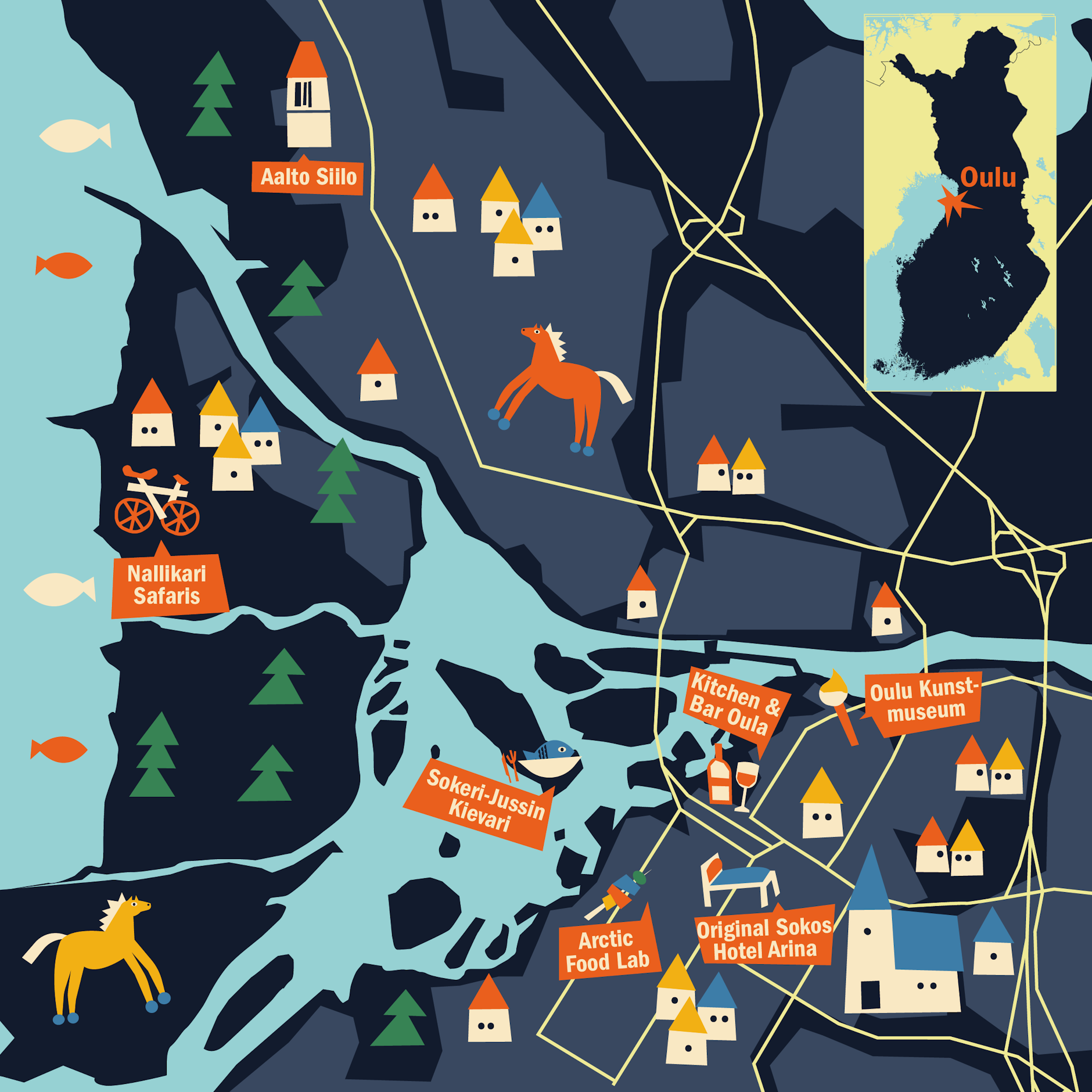 Das städtische Lebensgefühl Oulus ist geprägt von unbeschwerter Renitenz, ab dem 18. Jahrhundert stieg die Stadt zu einem der weltweit wichtigsten Zentren für die Gewinnung von Teer auf, im Laufe der Jahrhunderte ist die Stadt mehrmals abgebrannt und wurde wieder aufgebaut. Durch den Firmensitz von Nokia war Oulu in den frühen Zweitausendern das Zuhause einer der wohl coolsten Marken der Welt, bis heute ist es eine Heimat des technischen Fortschritts, erst 2025 investierte Nokia rund 200 Millionen Euro in einen neuen Campus für Forschung und Entwicklung.