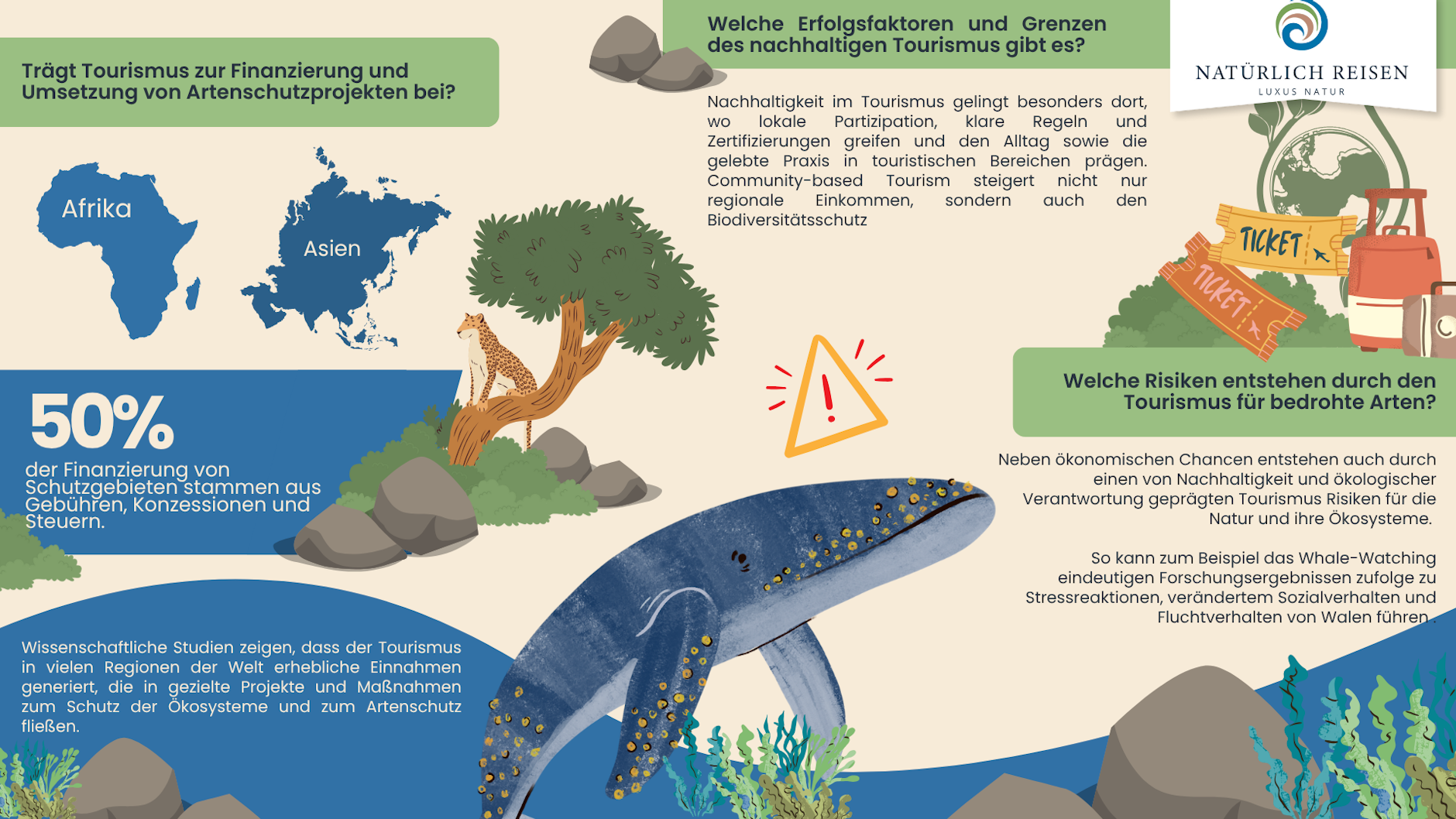 Die Untersuchung der aktuellen Meta-Studie von Natürlich Reisen zu den Zusammenhängen zwischen Tourismus und Artenschutz bündelt Erkenntnisse der letzten Dekade aus internationalen Fachpublikationen, Berichten und Reviews. Erfasst wurden dabei Finanzierungsströme, ökologische Effekte, Bildungsprogramme sowie Verwaltungs- und Managementstrukturen. Zusätzliche Praxisfälle aus Afrika, Asien, Lateinamerika und Inselökosystemen ergänzen das Bild.