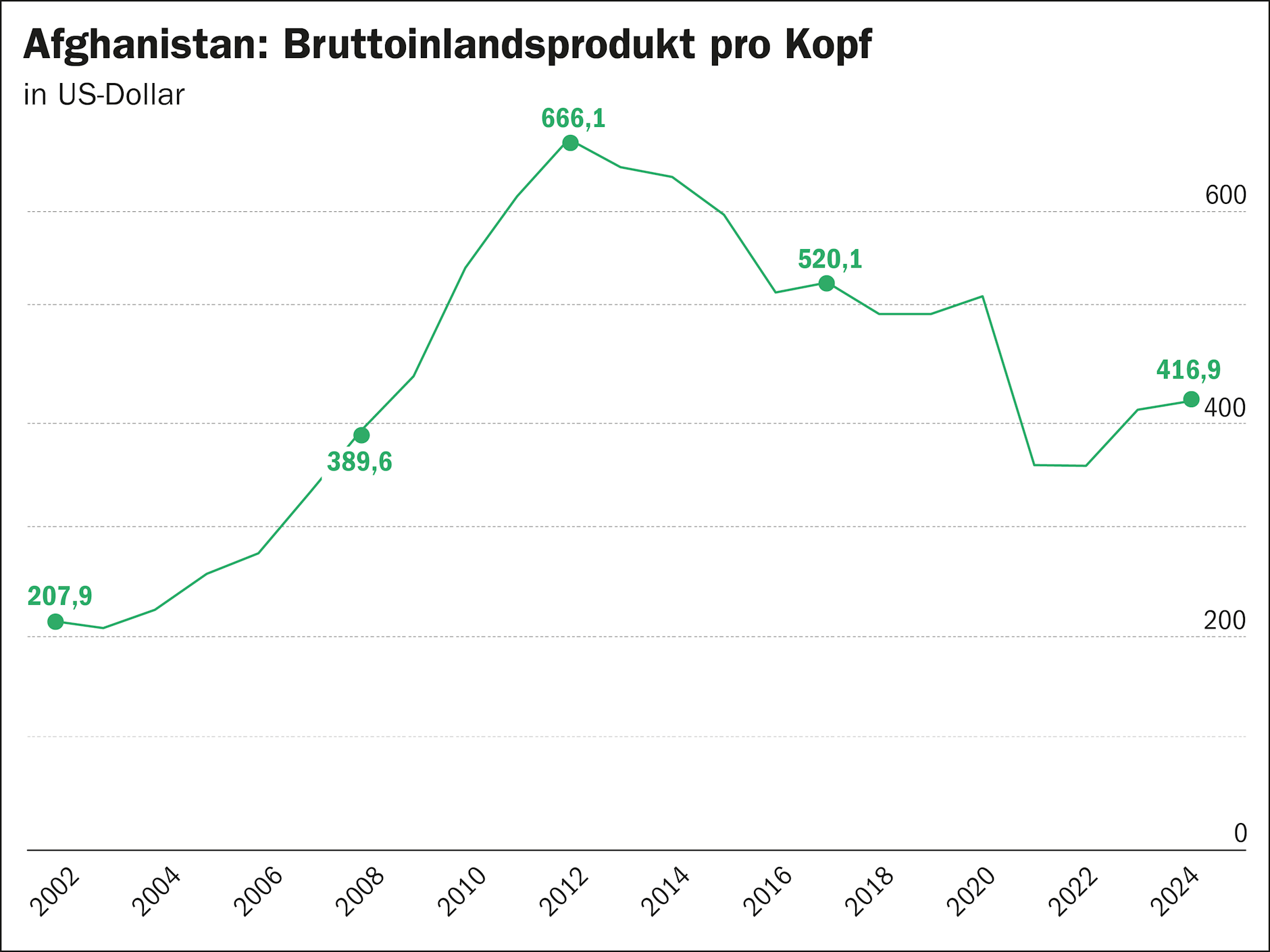 Seit 2022 haben die Taliban den Opiumanbau, einst die wichtigste Einkommensquelle des Landes und verantwortlich für bis zu 90 Prozent der weltweiten Heroinproduktion, weitgehend zum Erliegen gebracht. Satellitendaten der Uno bestätigen den drastischen Rückgang der Anbauflächen. Gleichzeitig wirbt die Regierung aktiv für den Anbau von Alternativen: Safran, Granatäpfel, Mandeln, Rosinen und Heilpflanzen gehören inzwischen zu den dynamischsten Exportgütern des Landes.