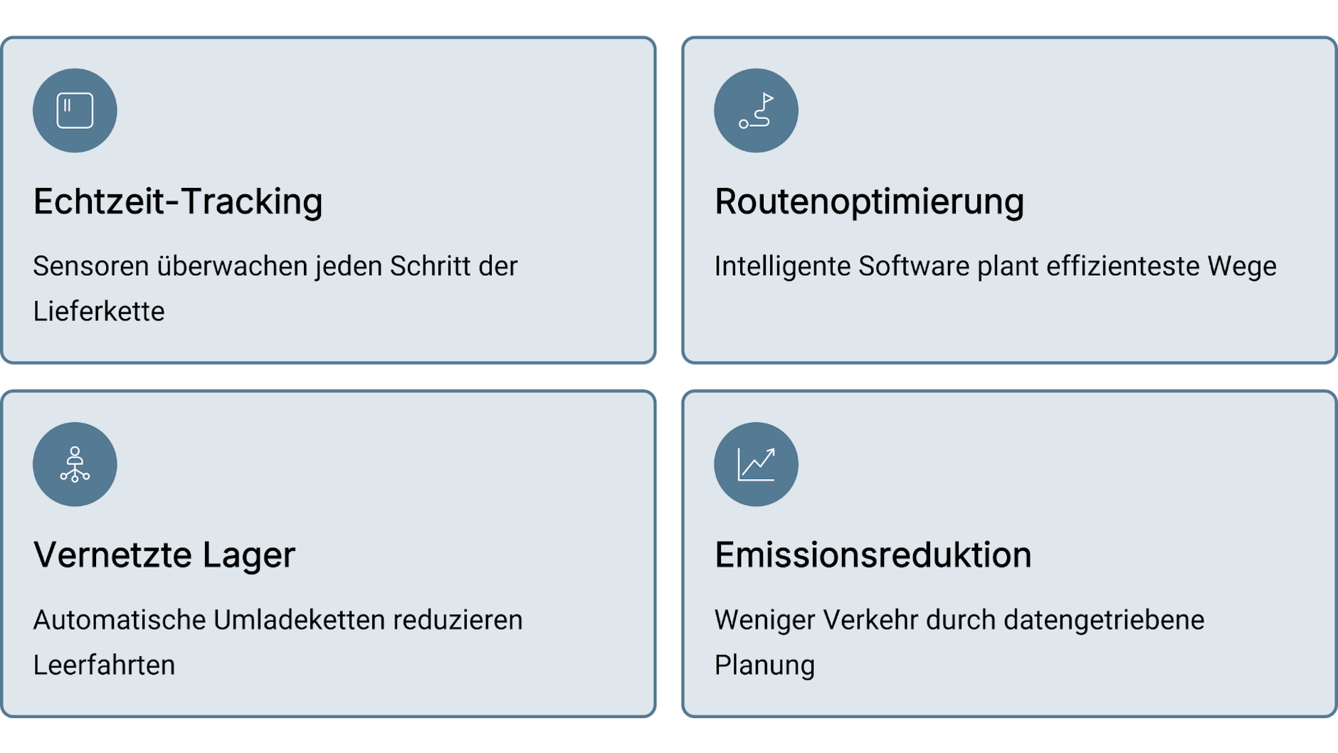 Diese datengetriebene Optimierung ist kein Zukunftsversprechen mehr, sondern gehört laut Branchenanalysen bereits zu den Top-Trends im Logistiksektor. Echtzeit-Routenoptimierung, automatische Umladeketten und vernetzte Lagerplätze reduzieren nicht nur Kosten, sie haben vor allem ein Ziel: weniger Verkehr, weniger Emissionen, mehr Transparenz für Unternehmen und Kunden.